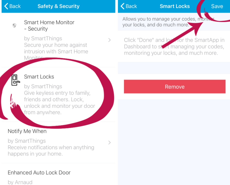 I cannot explain why, but the other one simply doesn’t allow you to do these things. It must be the classic app. Yet if you try to skip the newer app and just use the Classic app, you can’t seem to add your lock. Ask me how I know. (Lots and lots of frustration with my hub as I tried to make this feature work.)