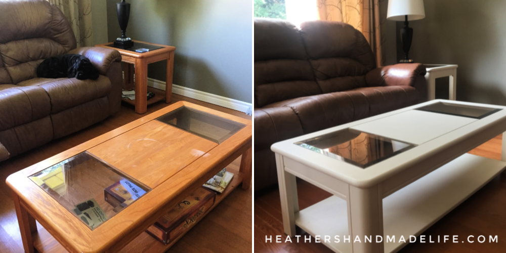 Since my stepmom was sick of them and wanted a change, I insisted we could paint the tables to modernize them. She was on board right away, but we knew the challenge would be convincing my dad to take a chance on a little paint.