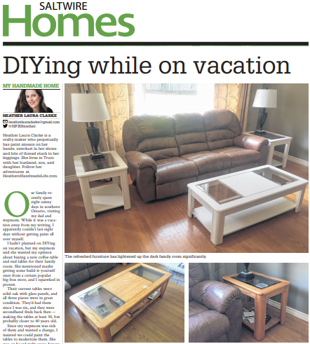 I hadn’t planned on DIYing on vacation, but my stepmom said she wanted my opinion about buying a new coffee table and end tables for their family room.