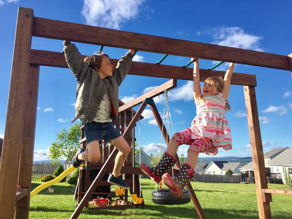 … but now they’re more interested in scaling the roof of the treehouse (yikes!) or daring each other to leap from the top of the monkey bars.