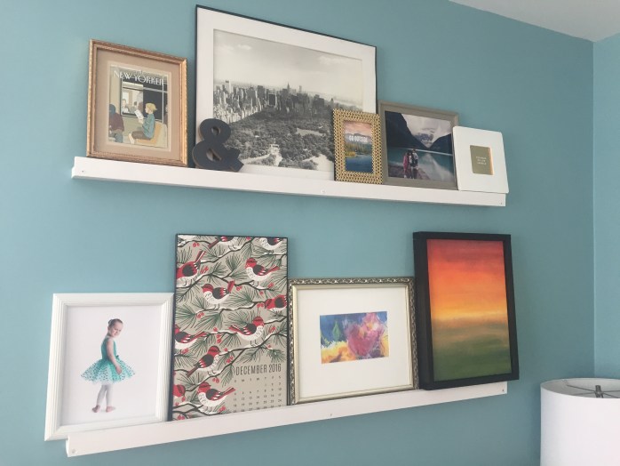 That was the case with our living room photo ledges. I’d decided, three years ago, to take down our floating shelves and replace them with wooden photo ledges. I loved the idea of swapping out frames whenever I felt like it — without making dozens of holes in the walls.