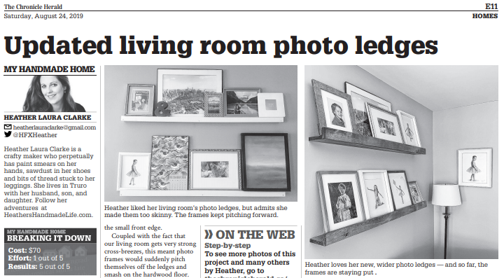Coupled with the fact that our living room gets very strong cross-breezes, this meant photo frames would suddenly pitch themselves off the ledges and smash on the hardwood floor. I’d lean the frames back up — minus the shattered glass — and we’d forget about the problem until the next sharp breeze sent another one tumbling down onto the couch.
