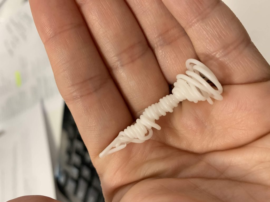 When I first experimented with the pen, I didn’t know how to stop the flow of plastic. It flew out of the pen in a steady stream and hardened into an ugly coil. I finally managed to switch it off, and I was holding a twisted piece of hard plastic that looked like a Barbie-sized candlestick.