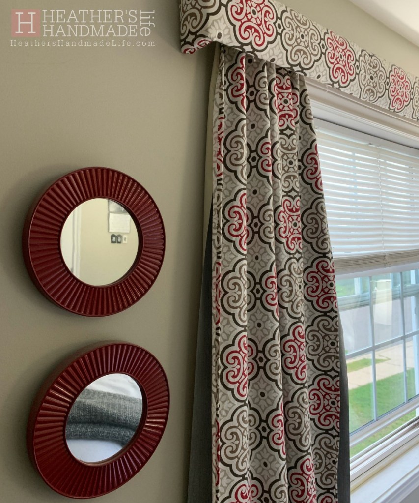 The old red clearance mirrors I spray-painted red years ago. The curtains I sewed years ago — with the blackout lining that I still haven’t finished sewing in place, oops.