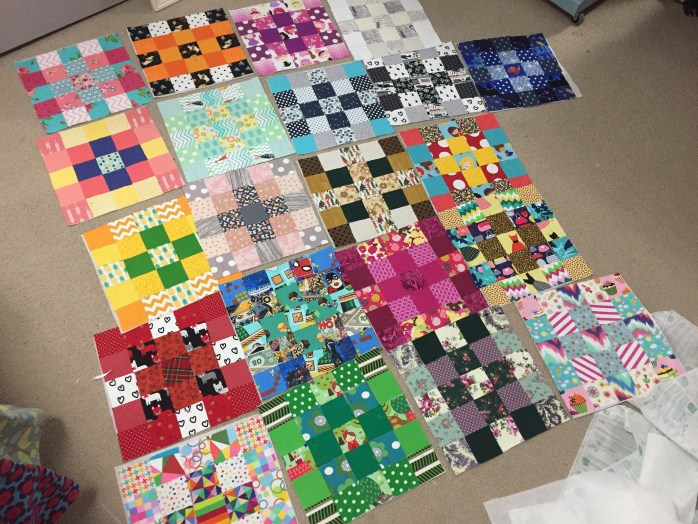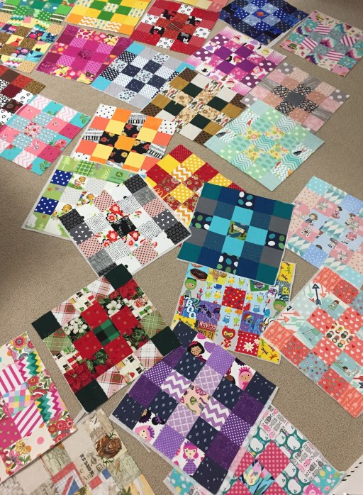 I loved pawing through my bins of scrappy squares and picking out different block themes — Christmas, Halloween, superheroes — or playing with different colour combinations.