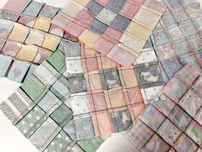 The 5×5 squares couldn’t be used in a quilt yet. They would look awful because the edges around each tiny square would fray and expose the interfacing underneath.