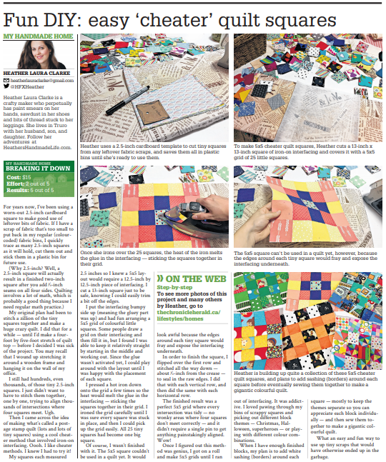 Then I came across the idea of making what’s called a “postage stamp quilt” (lots and LOTS of tiny squares) using a cool “cheater” method that involved SEWABLE iron-on interfacing.*
