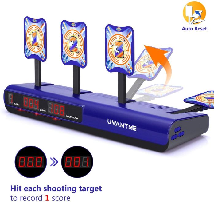 Our son has a whole arsenal of NERF guns and ammo. He loves those things. He does NOT need another NERF gun but I saw this target practice thingy (Electronic Shooting Target) and it seems like something he’d love. (Currently $39 CAD on Amazon.ca)