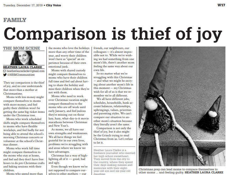 Moms who work scheduled shifts might compare themselves to moms who have flexible workdays, and feel badly for not being able to attend the school’s morning Christmas concerts or volunteer at the school’s Christmas dinner.