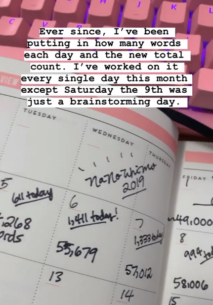 I did NaNoWriMo (National Novel Writing Month) and threw myself into working on my novel almost daily. I started November with about 49,000 words and now — Jan. 22 — I’m up to 85,000 words.