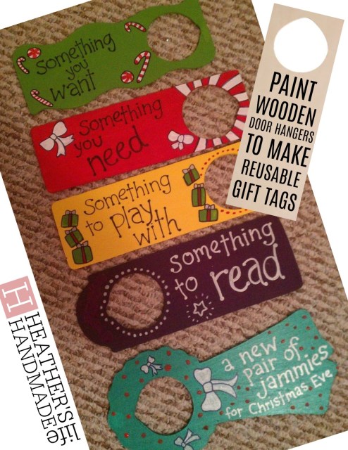 Back in 2010, when our son was only six months old, I bought a package of wooden door-hangers and painted special Christmas gift tags.