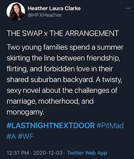 Each time, I shared three tweets about my first novel, #LastNightNextDoor, and received exactly one agent “like” per event.