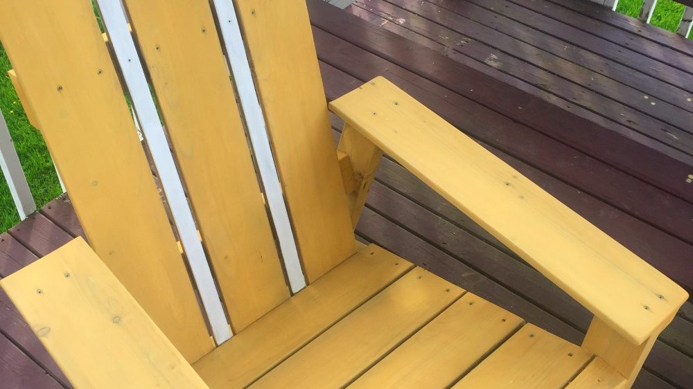 Since this is Nova Scotia and our summers can be very rainy — not to mention the Adirondack chair is likely going to sit outside year-round — we wanted to use pricier pressure-treated lumber.