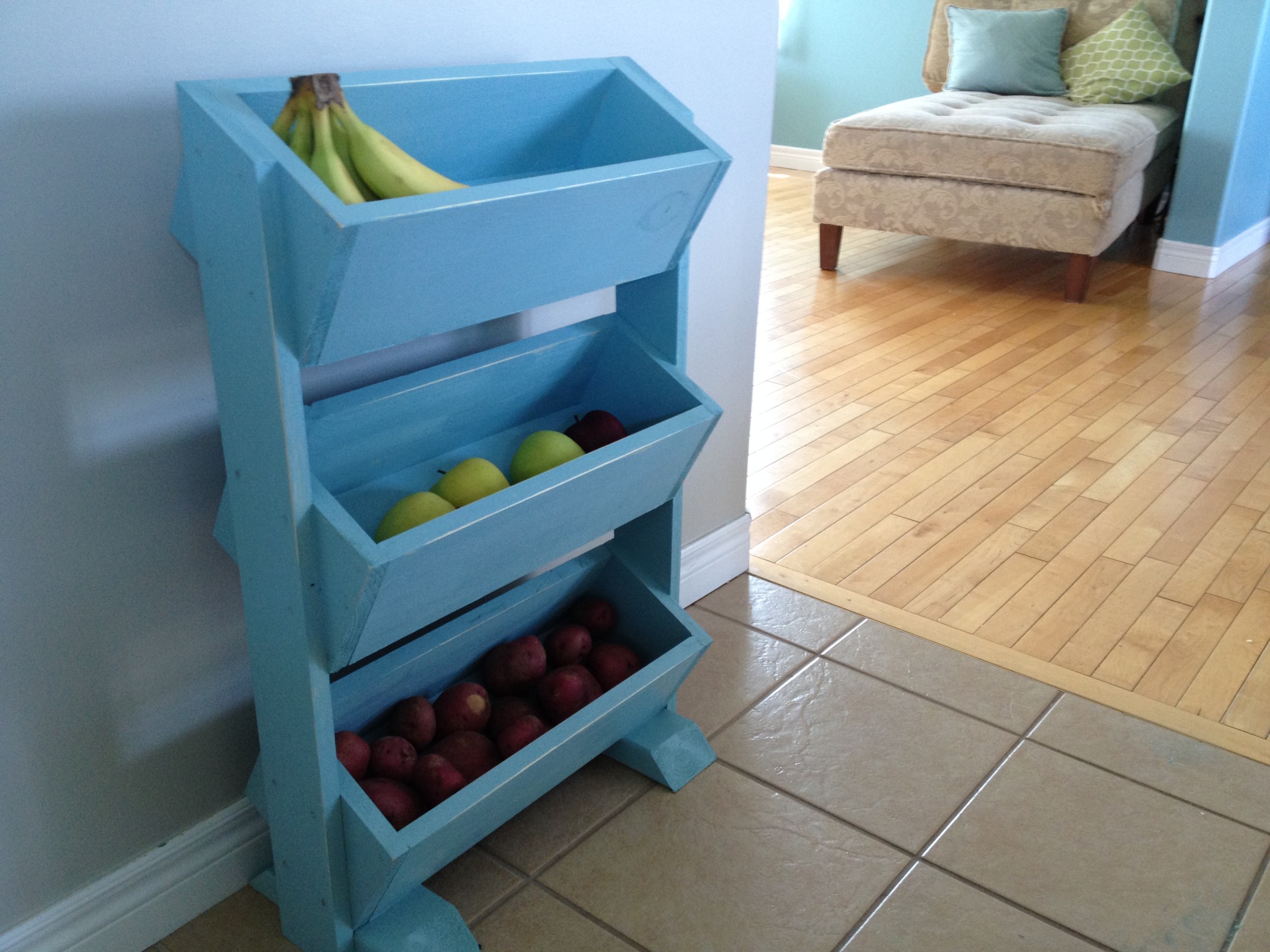 I wanted a DIY produce stand so we could stop the potatoes from turning to science experiments in the cereal cupboard. Hey, maybe we could get the bananas off the counter, too.
