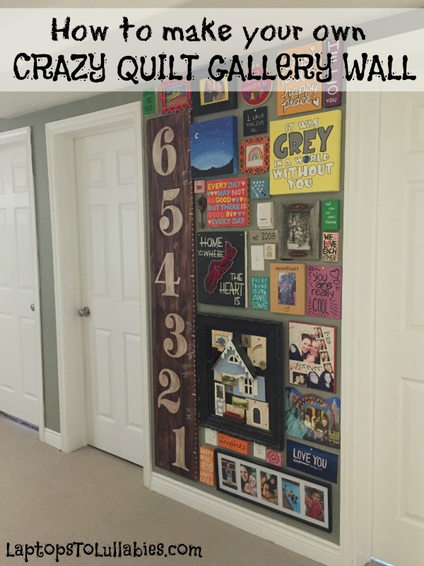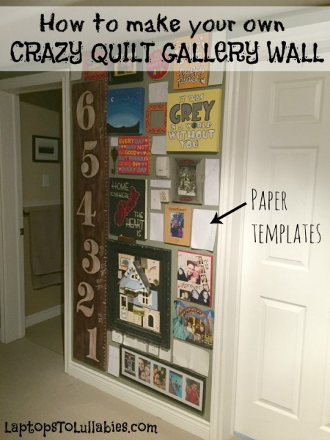It all started with a 45-inch wide space between two doors in our basement. It’s pretty much a wall of nothing but doors — my office, the bathroom and the laundry room — and it was really bland. I couldn’t hang one large item there because of a light switch and a thermostat smack in the middle (except, weirdly, not in any kind of alignment with each other).