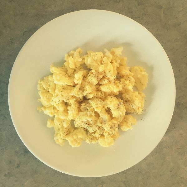 I force myself to make scrambled eggs because I know they are good for me, when really I want a huge bowl of the Froot Loops we have leftover from camping. Starting the day with that much sugar would be a terrible idea. It would send me racing for the kids’ Halloween candy from Fake Campground Halloween. It would leave me crankier.