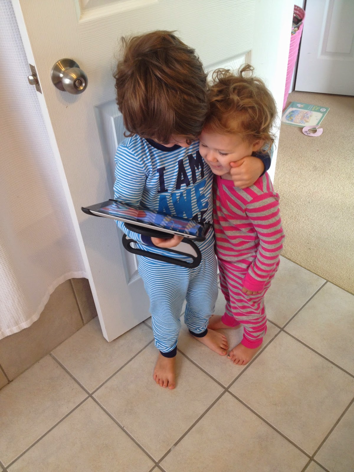 | These stripey sort-of-matching jammies! How can I part with youuuuuuuu? |