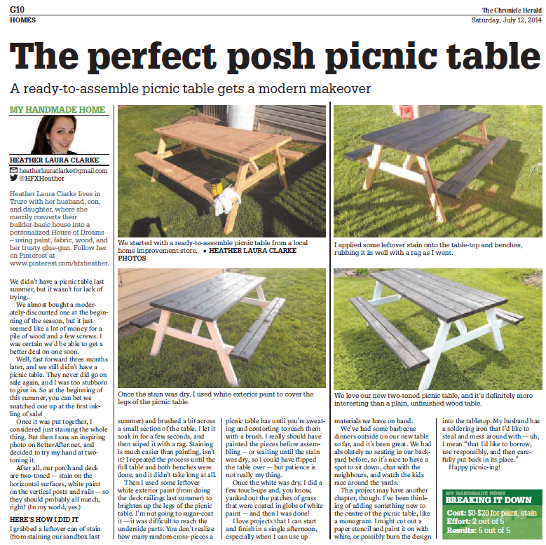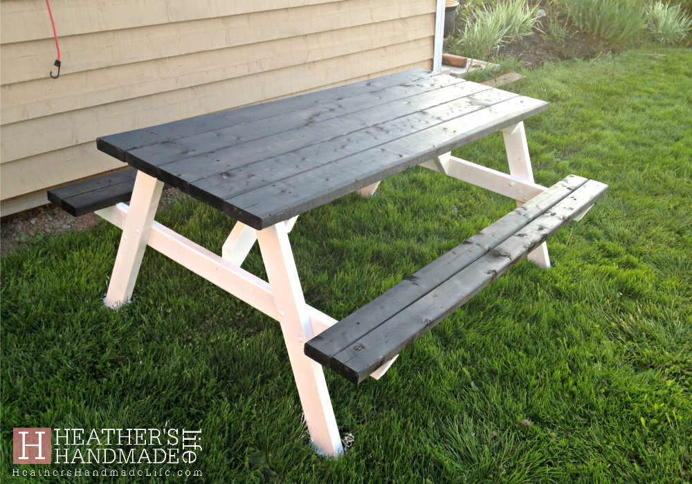 This project may have another chapter, though. I’ve been thinking of adding something new to the center of the picnic table, like a monogram. I might cut out a paper stencil and paint it on with white, or possibly burn the design into the tabletop.