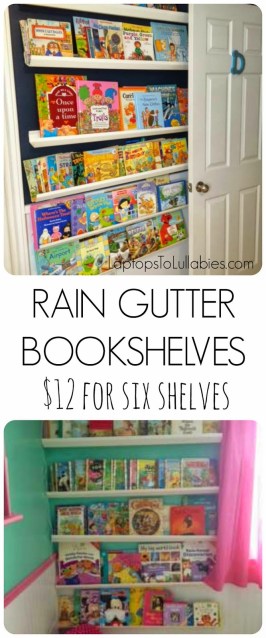 Oh, and for anyone interested in the $12 rain gutter bookshelves, here’s a post about them. |