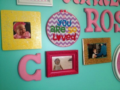 Thanks for touring C’s “refreshed” toddler room. What do you think? Is the gallery wall too crazy, or are you — like me — all about the gold, glitter, yellow, and hot pink?