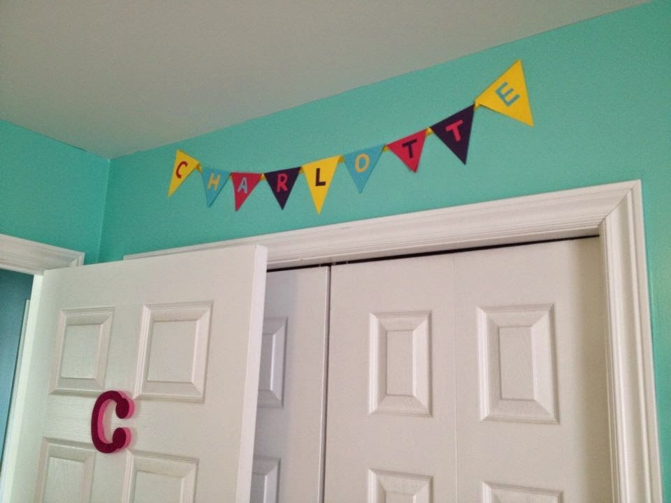 | This giant frame used to be in our kitchen, growing up. I snagged it from my mom’s basement, painted it the focal wall colour, and Darling Husband screwed it into the wall (since my beloved 3M strips definitely wouldn’t have held it). We (uh, HE) also painted wall inside the frame with chalkboard paint, and I made a quickie pennant banner out of felt and yarn. |