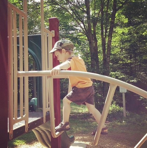 We’d been to this particular pool for the first time two days earlier (for a birthday party), and admired the beautiful new facility. But D had clung to me with a death-grip — while wearing a life jacket — and it took him almost the full hour to be comfortable enough to walk along the bottom where he could touch.