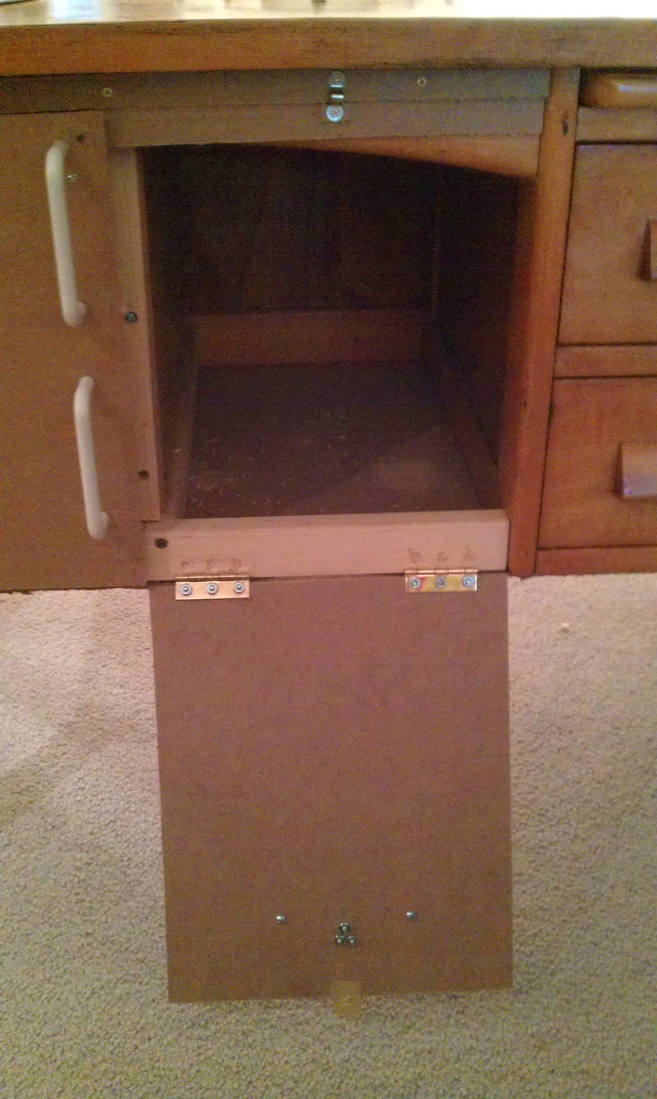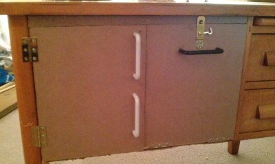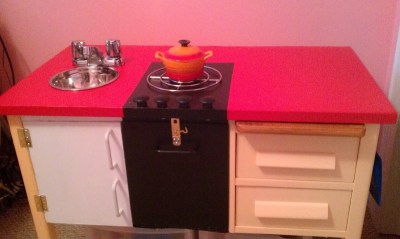 | He added a fridge door and an oven door, and I helped by adding the hardware |