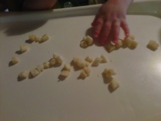 | … oh, and then used a knife to make sure it was reeeeeally small. Like my awkward left-handed pretend-to-cut shot? |