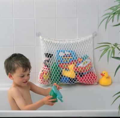 I spread a towel in the bathtub (the empty and dry bathtub, of course), and then put his bath toys on top of the towel, and let him play away in there. He was thrilled, and I was able to do my makeup.