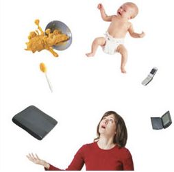 9:20 a.m. Exersaucer time for baby, e-mail checking for Mommy.