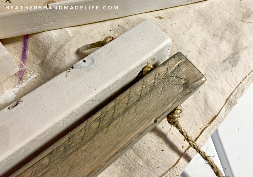 I’ve already cut more planks to make another one of these for our back door, and I’m trying a combination of 2x2s and 2x4s this time — using wood I had on hand, since I have plenty of leftover sisal rope.