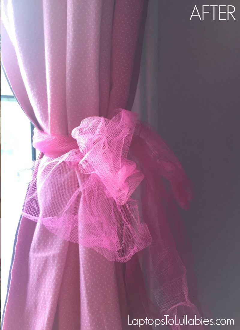 Tiebacks: Just scraps of tulle leftover from a bedskirt I’d made