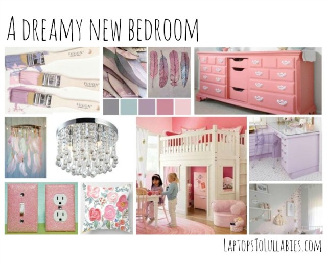 C wants a “purple and pink” colour scheme. I do not like purple (it pained me to paint her nightstands purple, although she insisted) so I’m going with lavender and blush with little touches of super-soft aqua and grey. And lots of white, of course!